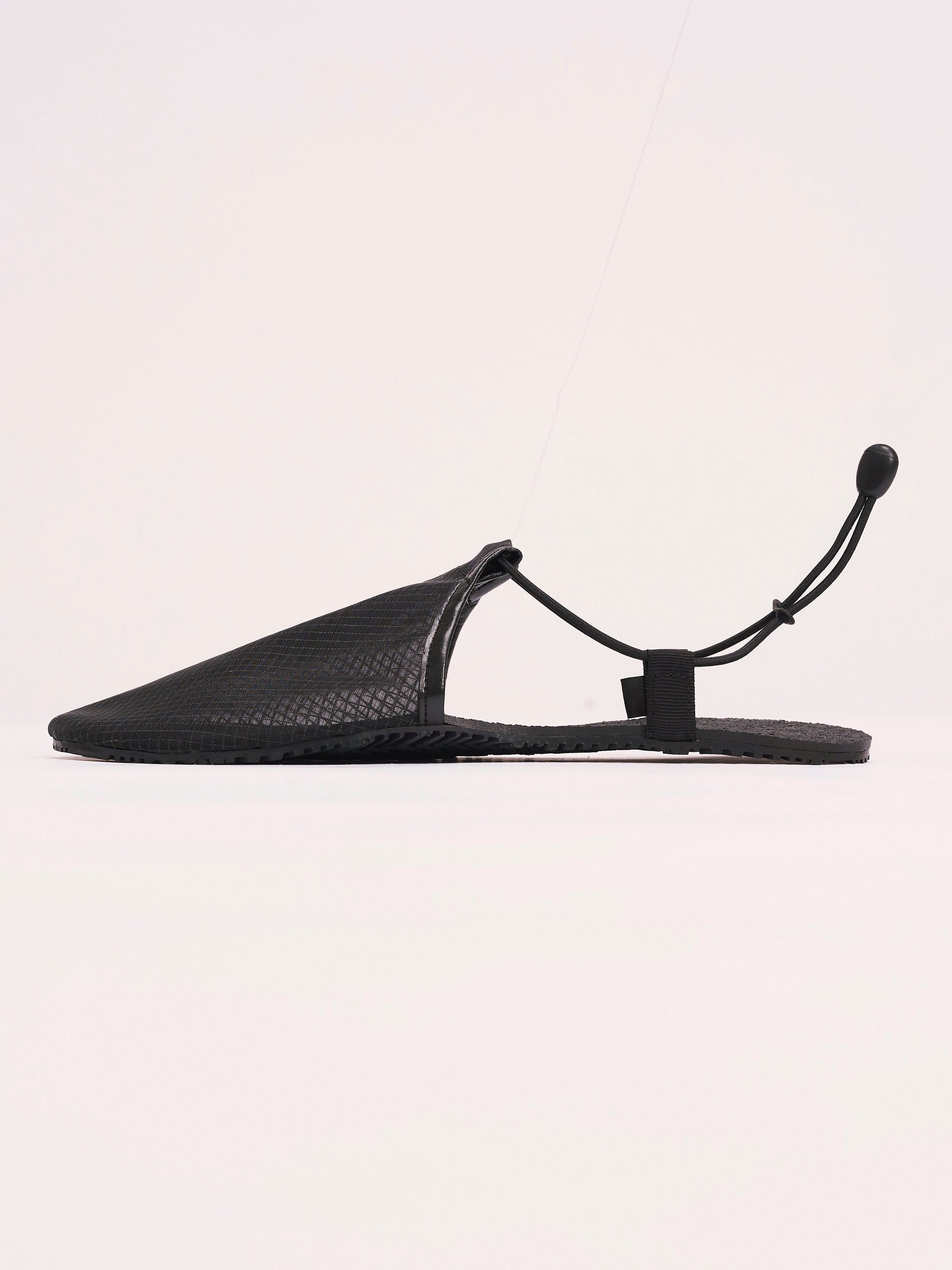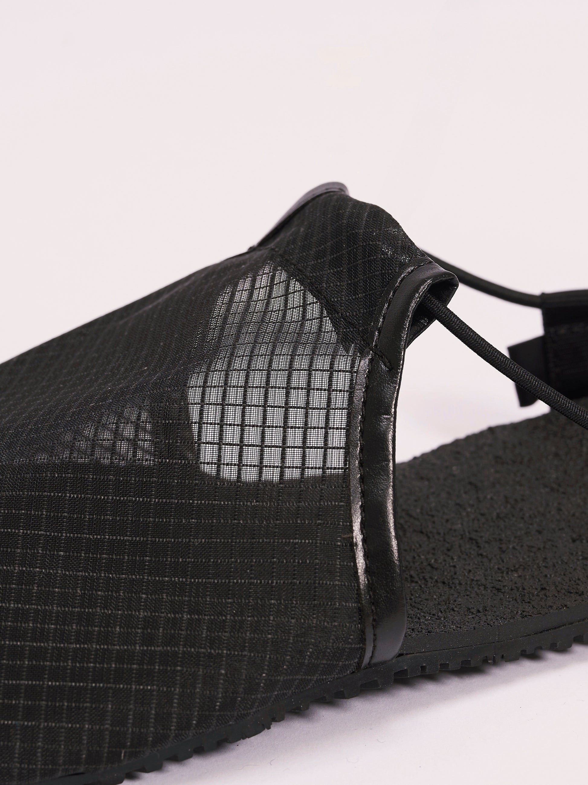 アッパーには、超軽量・高耐久なメッシュ素材【Dyneema® Mesh 】を採用。見た目の軽やかさと機能性を両立した素材選定です。ソールには8mmのVibram社【LISK NEWFLEX】を使用することで、さまざまな路面に対応可能なグリップ力を持ち、柔軟性、軽量さのバランスを重視。