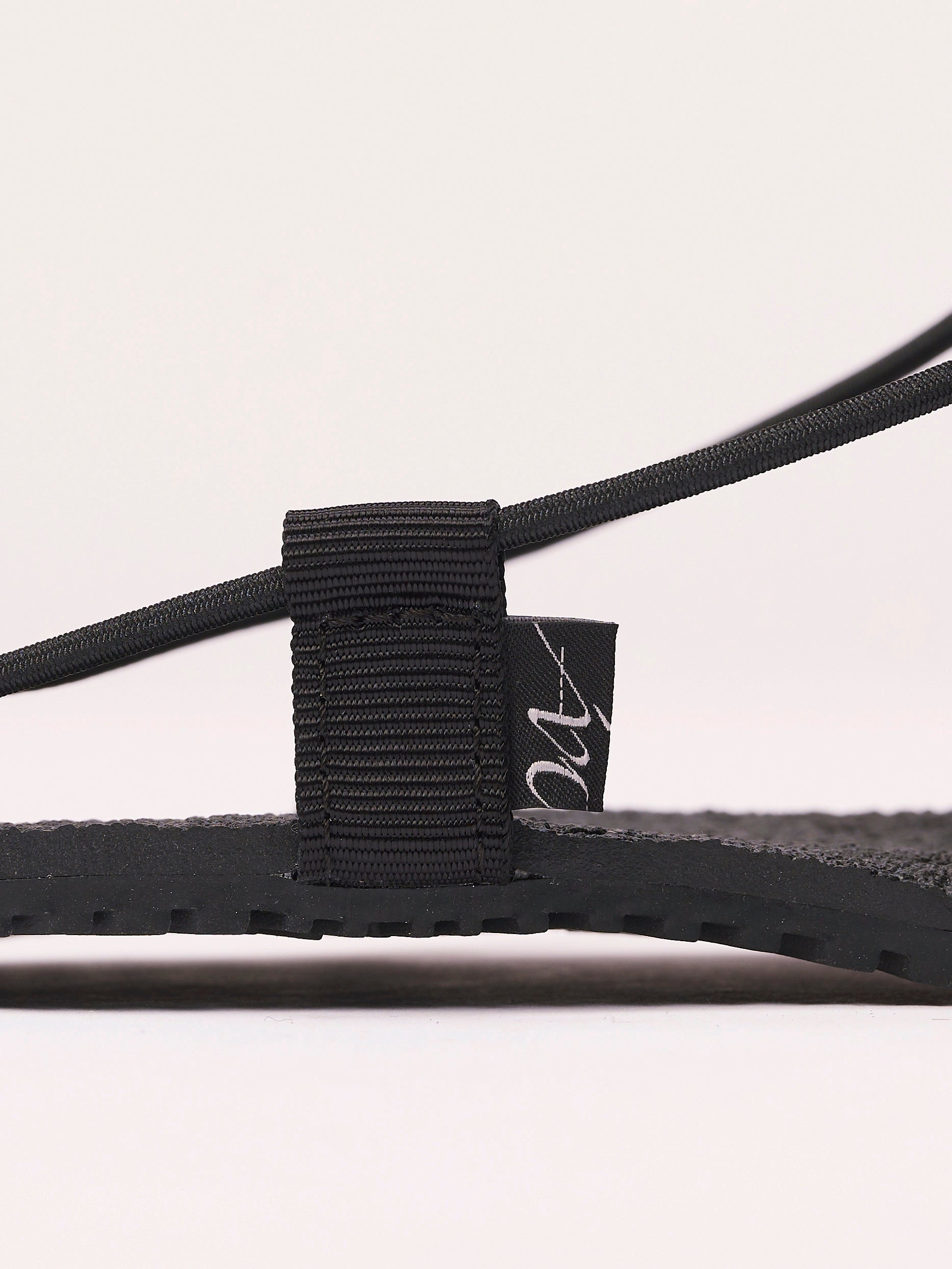 紐には、ナイロンベースの3mmゴムコードを採用。伸びのある素材が足の動きに柔軟にフィットし、リラックスした履き心地を提供します。インソールにはクレープ柄のゴムシートを使用し、滑りにくく安定した歩行をサポートします。
