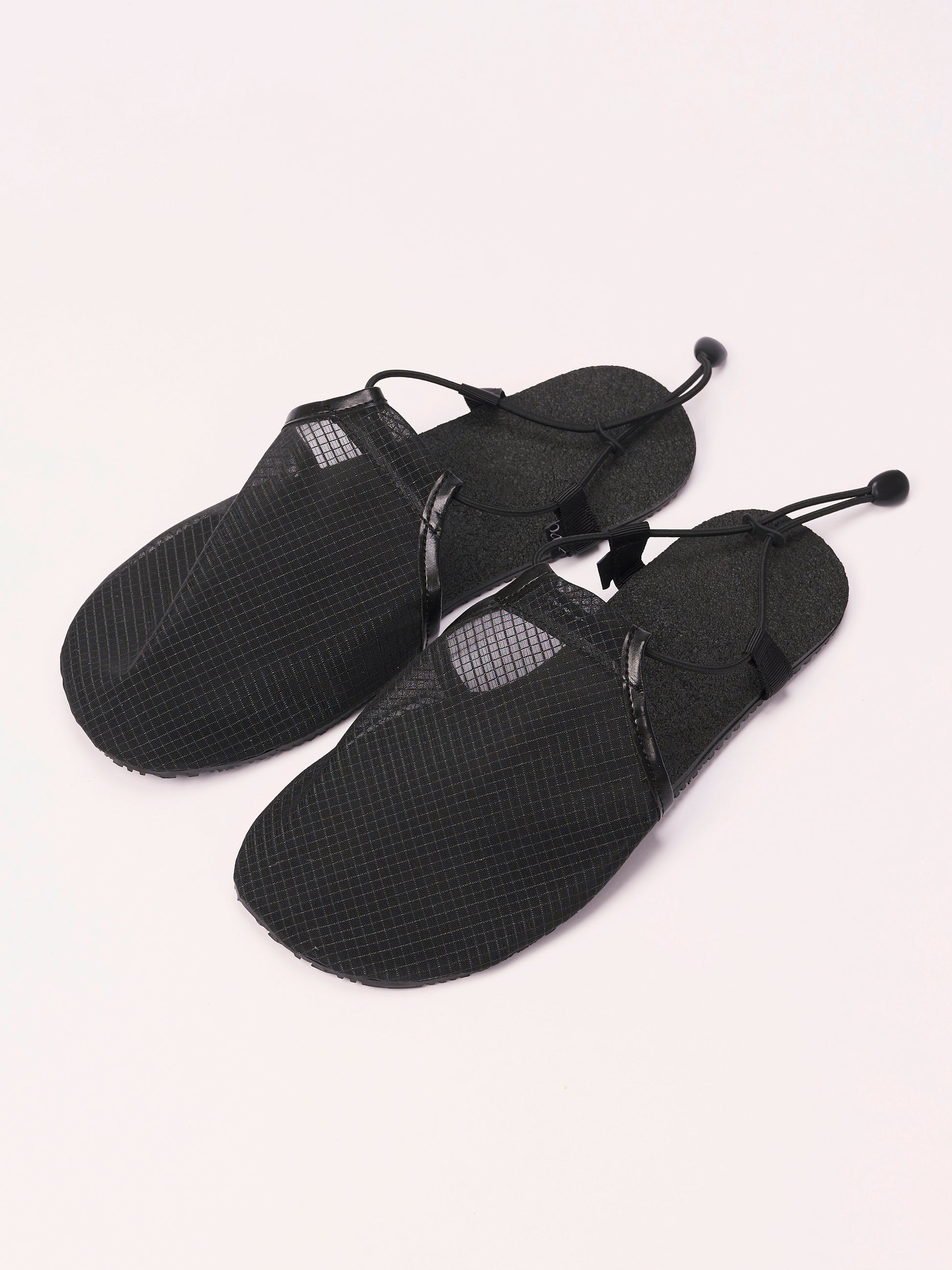 フレキシブルスリッパは、ミュールのような軽快さとサンダルとしての機能性を併せ持ち、シーンを選ばず自然に寄り添う一足です。